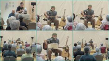 前半は、ギターとカホンを使ったバンドねこまんまで「天使の誘惑」「ブルーライトヨコハマ」「珍島物語」といったおなじみの曲を6曲演奏歌っていただきました。