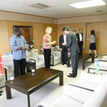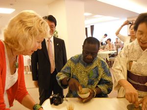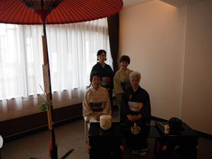 ラウンジでは、茶道裏千家淡交会帯広支部佐藤宗美社中にご協力をいただき、野点にてお茶会を開き、米国代表団の皆様にも参加をしていただきました。
