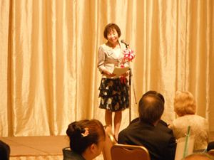 エンプティボウルフェスティバル終了後、ホテル日航ノースランド帯広にて米国代表団の歓迎レセプションが行われました。株式会社太平洋シルバーサービス北海道、代表取締役池本雅明より歓迎の挨拶が行われ、続いて帯広市社会福祉協議会、会長畑中三岐子様より代表団歓迎のごあいさつをいただきました。その後、代表団団長、キャサリン・ペイトンさんよりご挨拶がありました。帯広信用金庫執行役員本店長、高橋嗣明様の乾杯のご発声のもと、歓迎レセプションが始まりました。