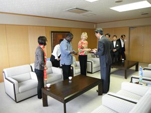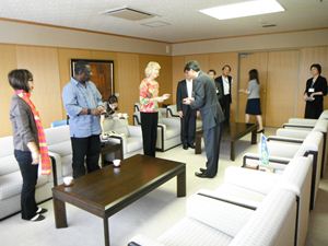 エンプティボウルフェスティバル、米国エンプティボウル組織委員会歓迎レセプションの翌日 、7月9日(月)、代表団の皆様は帯広市役所、そして、エンプティボウルの開催に多大なるご支援をいただきました池田町生きがいセンター、帯広美術工芸学院を表敬訪問しました。帯広市役所では、嶋野副市長より、是非、今回の活動は継続的に行って欲しいという強い要望をいただきました。また、池田町の生きがいセンターでは、ご高齢ながら元気に作業をしている光景や数々の素晴らしい陶芸作品に代表団の皆様も驚きと感動を実感されたご様子でした。また、帯広美術工芸学院の美術展示品にも大変興味をお持ちのようでした。代表団の皆様は7月10日(火)北海道を離れ東京へと向かわれました。