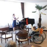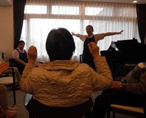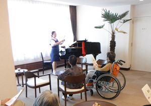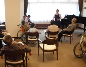始めはピアノ伴奏に合わせて童謡を歌われ、その後は輪唱されたり、