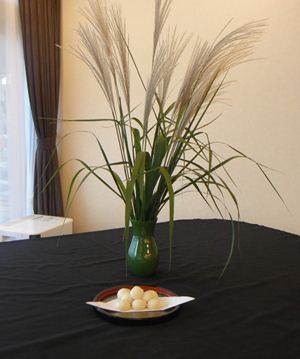 ススキと一緒に1階のラウンジに飾り、十五夜を満喫されました。