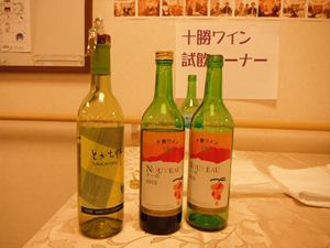 十勝ワインの試飲会も開催され、十勝ワイントカップケーキと一緒に