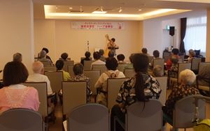 ハープの柔らかな音色で、「大きな古時計」や「ふるさと」などお客様にもお馴染みの曲が流れると、皆様曲に合わせて歌う場面も見られました。