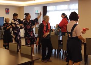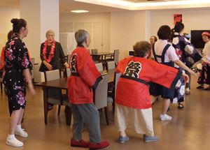 8月16日は盆踊りを行いました。お客様と職員が浴衣やはっぴに身を包み、