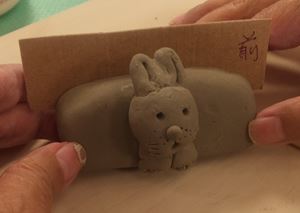 先月、陶芸教室で作った「ウサギの写真立て」が焼き上がりました。