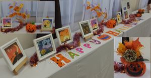 10月のギャラリーということで、ハロウィンの飾り付けがなされて、楽しい雰囲気に展示されています。