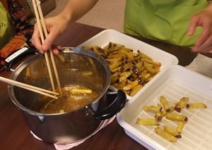 甘いたれが、カラッと揚がったさつまいもに絡み、皆様に大好評でした。「とても美味しかった、夕飯が入らないわ」というお客様もいらっしゃいました。おなかが膨らむので、食べすぎには、ご注意を!