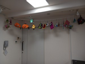 作品を制作されたのは幕別町在住の牧野泉美さん、牧野心絆(ここな)さんで大小も色合いも様々な作品が展示されています。また、天井に吊り下げられた作品もあり、目を奪われます。