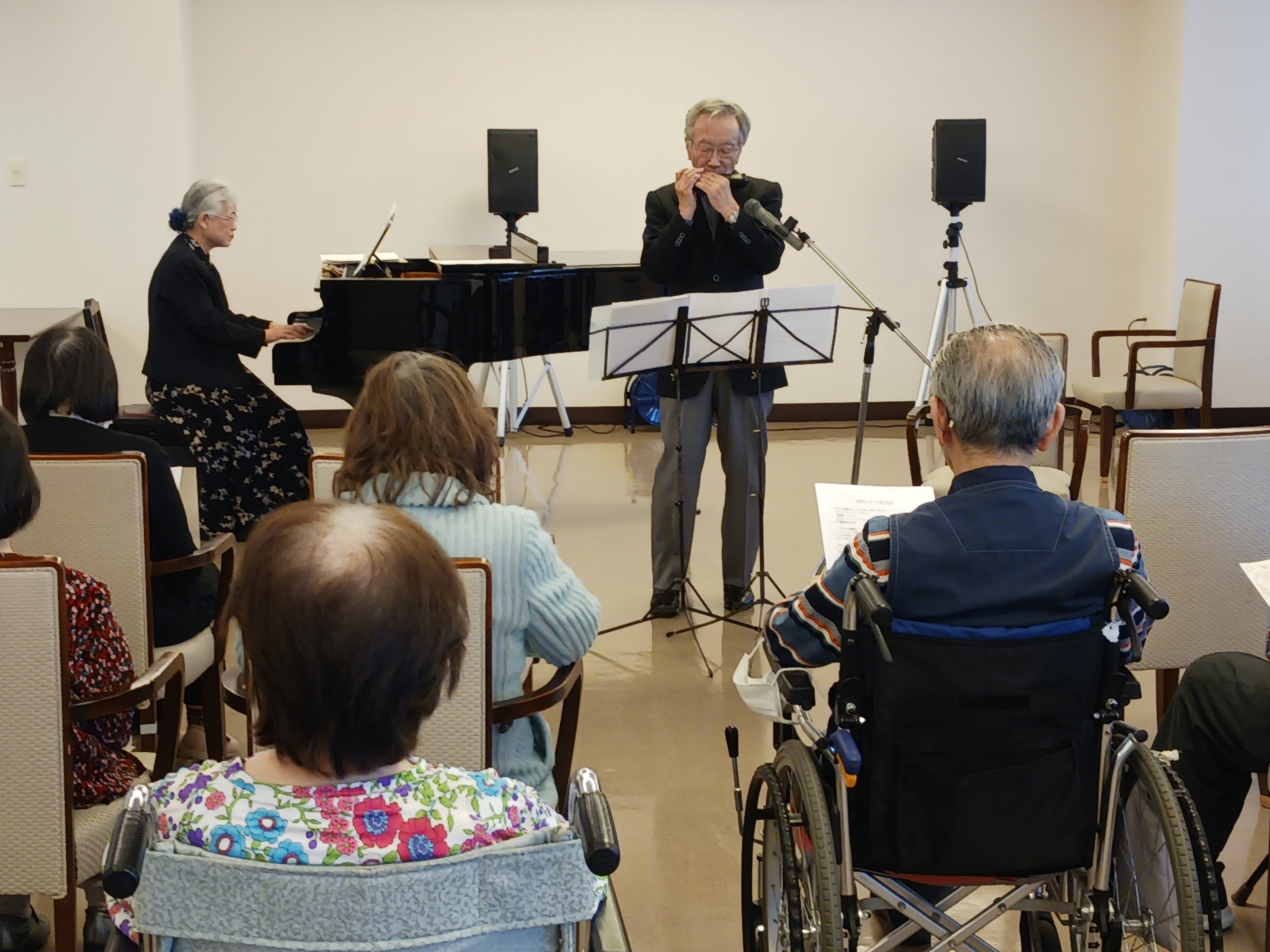 ご入居のお客様は、クロマティックハーモニカとピアノの演奏を楽しまれていました。