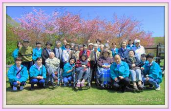 例年、釧路に桜が開花するのは5月の中旬〜下旬。今年は暖かい日が続き、桜の開花が半月も早まりました。ツアー当日のお天気は快晴!バスの中では、「早く桜を見たいね〜」と皆様楽しそう。