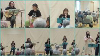 前半は、ギターとカホンを使ったバンドねこまんまで「天使の誘惑」「ブルーライトヨコハマ」「珍島物語」といったおなじみの曲を6曲演奏歌っていただきました。